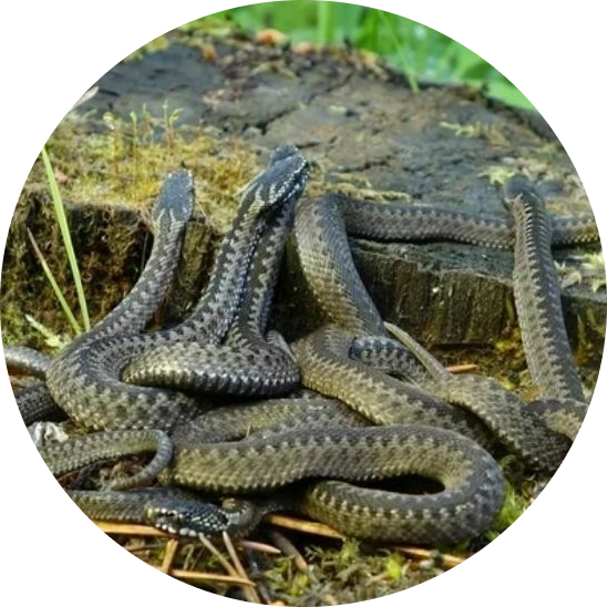 Зимуют гадюки в земле, в норах грызунов, кротов, в гниющих корнях деревьев, под пнями, в пустотах торфяников, под стогами сена.